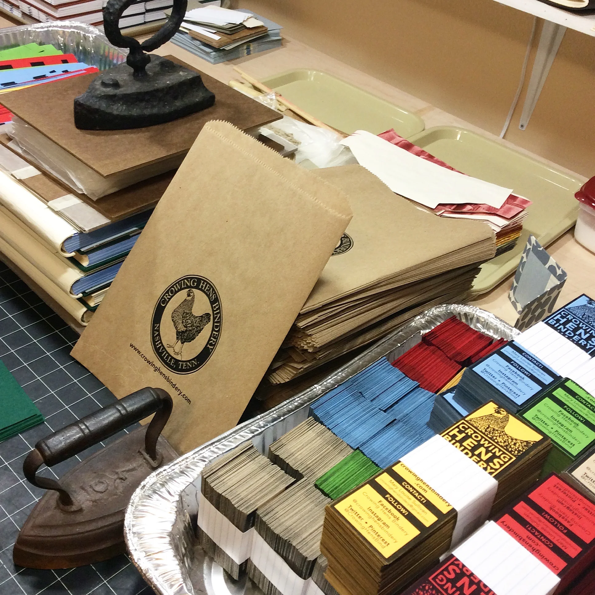 Crowing Hens Bindery is a one-woman bindery and letterpress print shop that specializes in traditional handmade blank books, letterpress printed stationery, limited edition fine art prints, unique book jewelry & letterpress-printed decorative papers. As the owner of a Nashville-based private business, I do my best to honor the heritage of fine craft and art that saturates my community and region. All of my products are designed and made by hand in Nashville, Tennessee from high quality materials available using traditional bookbinding techniques. I aspire to create beautiful, useful work that becomes a part of your everyday life.